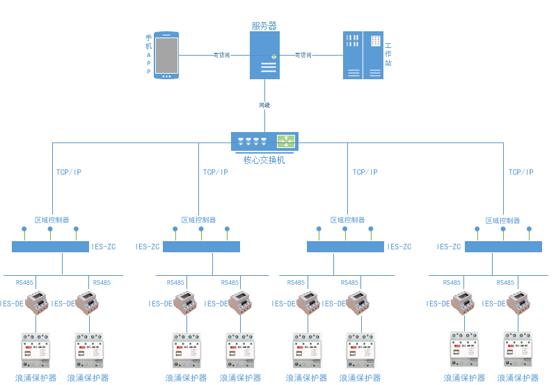 网络化是防雷装置管控的重要手段,通过网络模块能够将接闪装置、后备保护器、SPD脱扣、SPD漏电流、接地电阻、等电位、雷电数据记录等连接到网络管控中,通过实时查询能够及时发现防雷装置的有效性,避免造成不必要的损失。